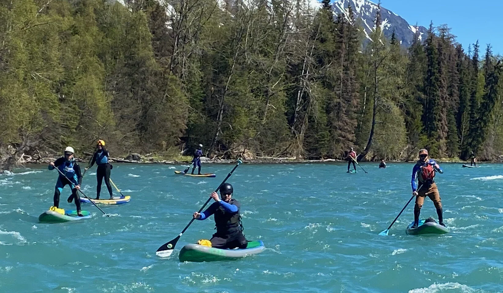 One of the most famous waterways in the world, the Kenai River is the crown jewel of SUP paddling in Alaska! Its turquoise colored water, majestic Kenai Mountains and salmon so thick you can’t see the bottom will be a memory you will never forget! Our Kenai river SUP tour is designed for those looking for a high adventure experience with breathtaking views, challenging rapids and thrills you will never forget.