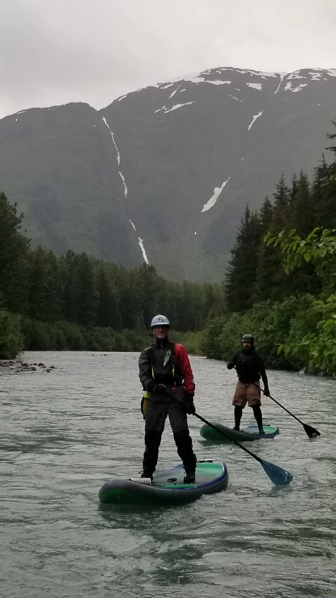 This trip is a level 2 designed to allow our guests to experience river SUP paddling in a class I-II section of river. This paddling trip begins at the confluence of the Glacier and Carmen rivers where the river is still splashy with small features but overall very safe for level 2 clients who want to hone their skills.The river gently meanders down to meet the Twentymile river where it becomes even slower flowing until the take out at the Seward Highway. The last few miles can be a bt slower and a lil more windy so tours will depend on conditions. We will start this trip with a short class and safety session to get everyone the basics of river safety, learn how to ferry, safely navigate around bends and get used to feeling the flow of the river without any big consequences such as large rapids or holes. Once on the river we will continue to instruct while floating approx 7 miles of river. This trip is great for this folks who have at least a little sup experience and want to feel comfortable on river currents. The jet boat trip up the river is an unforgettable experience!